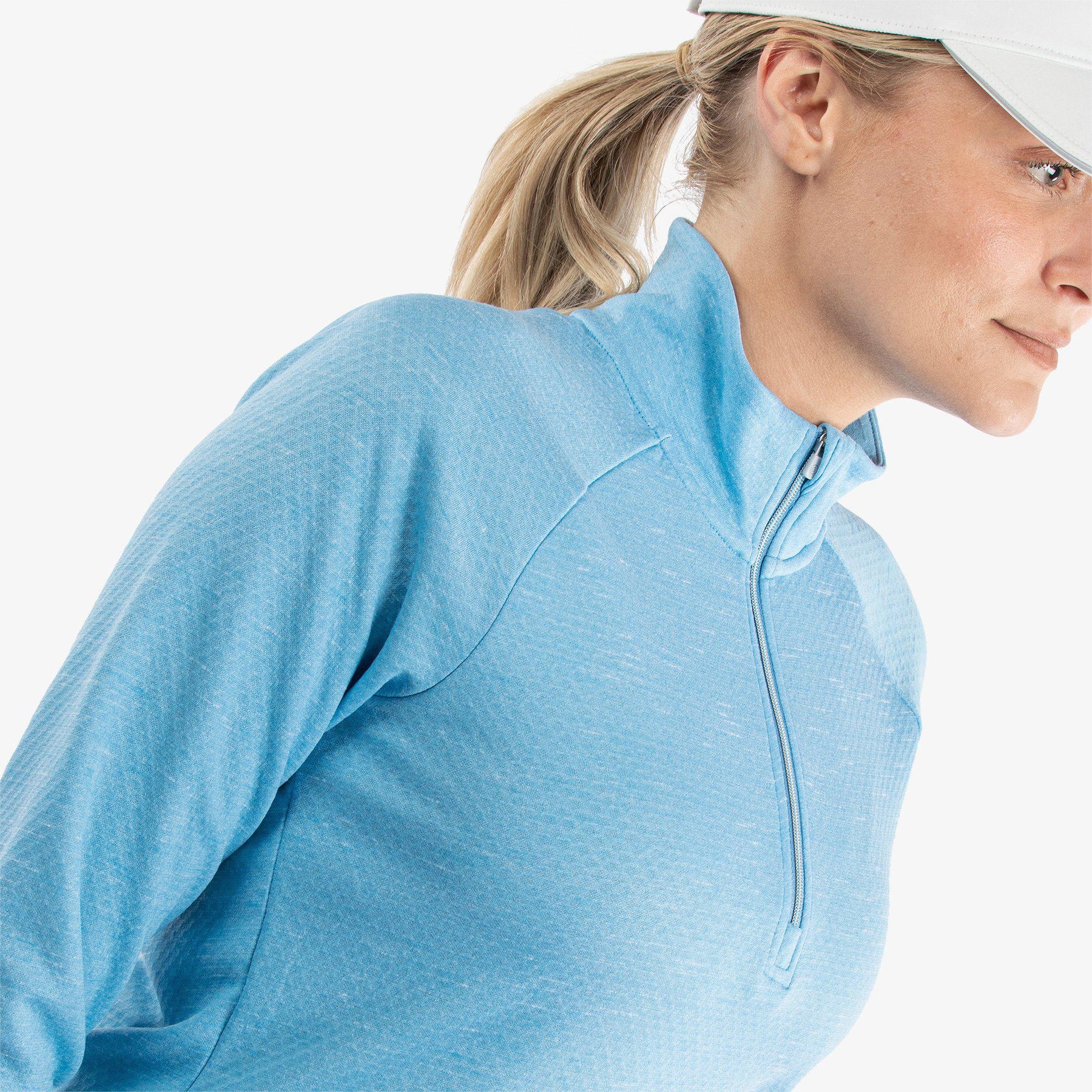 Diora is a lightweight women’s melange quarter zip mid layer made from Galvin Green’s high-tech INSULA™ fabric. Designed to provide a light layer of thermal insulation as a sweater or layer underneath your jacket, Diora is an essential piece in a well-rounded golf wardrobe. Made from a bluesign® approved fabric, this pullover has a soft handfeel and excellent next-to-skin comfort.